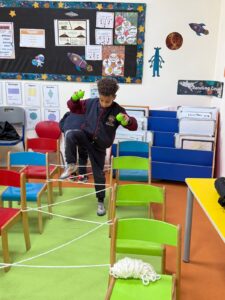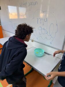 In this activity, students moved through physical challenges designed to represent real-life goal journeys.